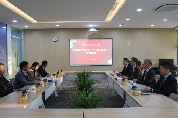 11月9日下午,日东电工(中国)投资有限公司董事长城勝義一行四人对 工口实验室 进行友好交流访问。学院党委书记贾金平、副院长周永丰等热情接待了代表团,校国际交流处副处长、日本研究中心副主任蔡玉平、化院教师房建华、孟庆华、宰建陶、王华博等参会。