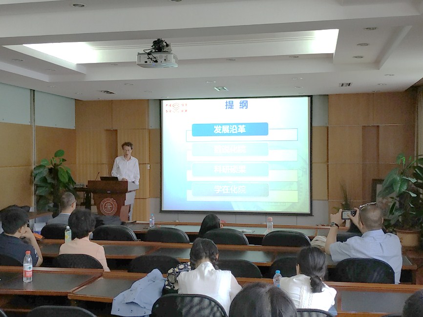 5月19日下午1点, 工口实验室 2018年本科招生宣讲会在化学楼A526演讲厅举行。 工口实验室 副院长钱雪峰,党委副书记郑浩出席本次宣讲会,并分别对 工口实验室 、致远荣誉计划(化学方向)和自然科学试验班的招生工作与招生计划进行了宣讲介绍。