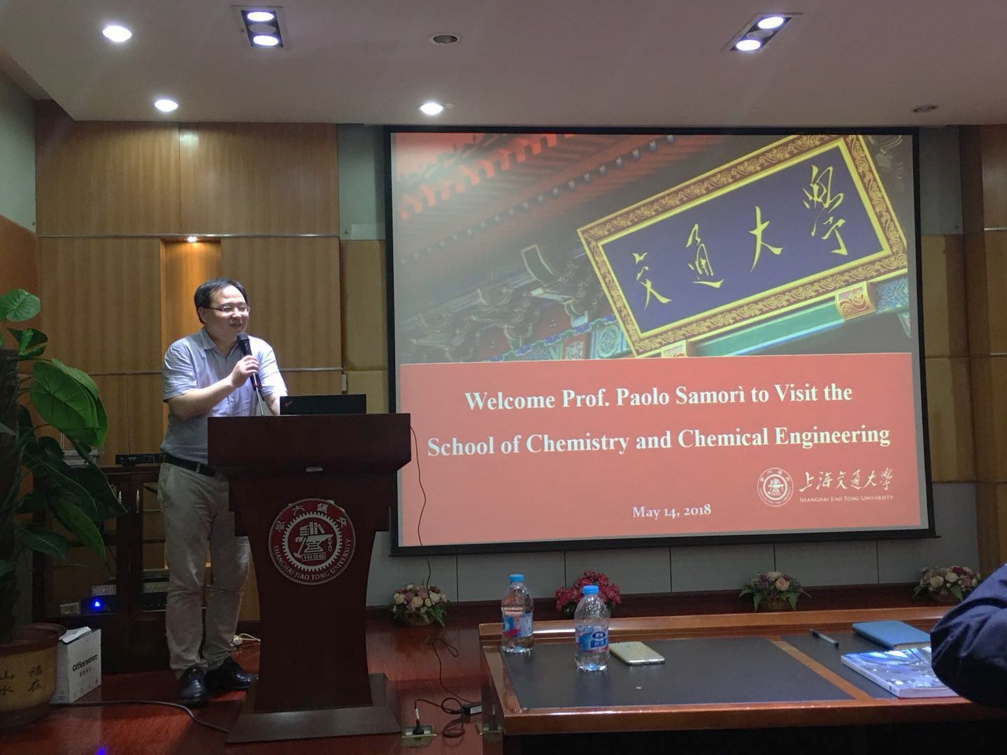 5月14日下午,欧洲科学院院士、法国斯特拉斯堡大学教授、法国国家科学研究院超分子科学与工程研究所所长Paolo Samorì教授来访工口实验室 ,参加上海交大顾问教授受聘仪式。仪式在化学A楼528会议室举行,化院特聘教授冯新亮主持了本次典礼。