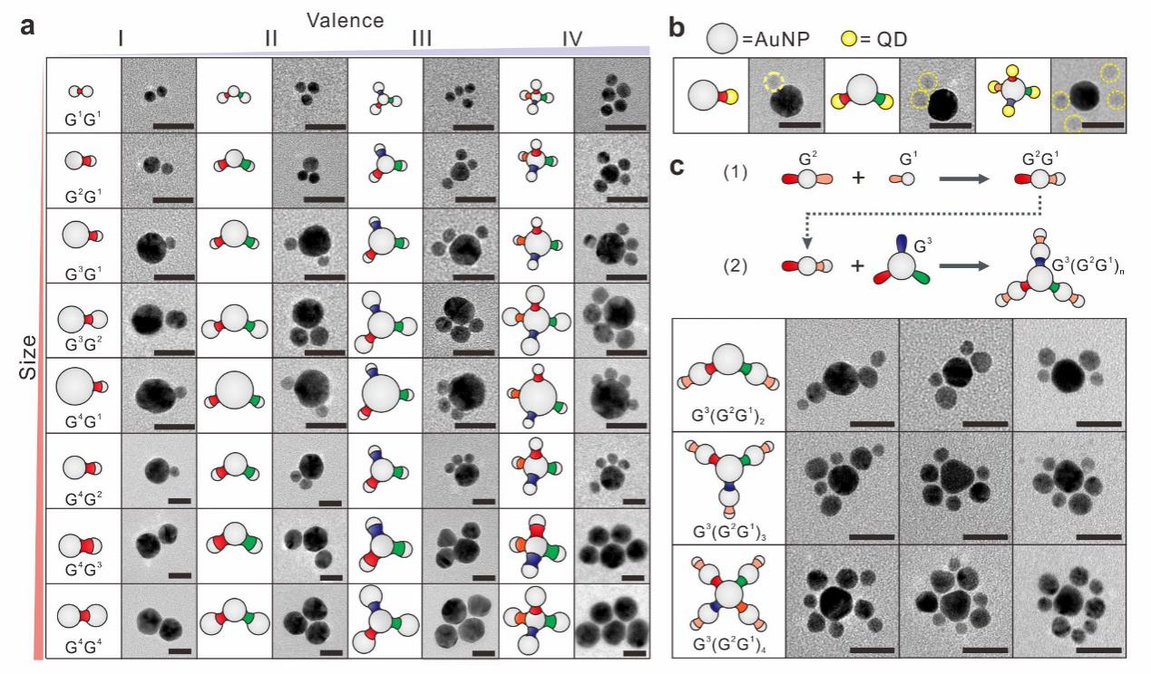 化学与化工学院樊春海团队发展了一种用单链DNA编码金纳米粒子的方法,并实现了动态“纳米”分子反应。该方法通过设计一条多嵌段的单链DNA序列,可以赋予金纳米粒子类似原子的离散价态和正交价键。这些“纳米”原子则可通过DNA分子反应组装成各向异性的“纳米”分子,并进而产生“纳米”分子反应。该工作以“Programming nanoparticle valence bonds with single-stranded DNA encoders”为题于Nature Materials 在线发表(//www.nature.com/articles/s41563-019-0549-3)。姚广保、李江、李茜和陈晓亮为论文的共同第一作者,樊春海与荷兰格罗宁根大学Bernard L. Feringa为共同通讯作者。
