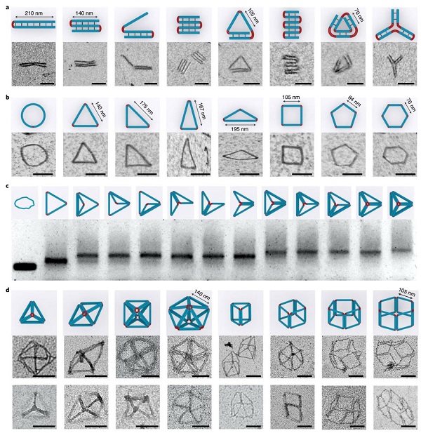 DNA的特异性碱基互补配对能力和“刚柔并济”的结构特性,决定了DNA强大可控的自组装性能。借助DNA折纸(DNA origami)技术,长的单链DNA(ssDNA)可在数百条短DNA链的帮助下被折叠成指定形状,但是这些结构的尺寸主要集中在几纳米到一两百纳米之间。迄今为止,研究人员一直很难组装出更大(微米至毫米级)的DNA结构,这严重限制了DNA折纸技术的广泛使用。