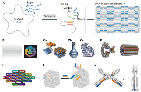 DNA折纸术(DNA origami)是DNA纳米技术的一个重要分支。该方法发明于2006年(Nature 2006),即利用上百条短单链DNA作为“订书钉”,辅助折叠一条长达数千碱基的噬菌体基因组单链DNA,并自组装形成预先设计的结构。近年来,DNA折纸术迎来了快速发展,目前几乎可以定制任意形状的复杂几何结构,包括各种实心或者镂空的3D结构、复杂曲面结构、可以动态变构的纳米装置与纳米机器人等等。多种界面友好的DNA折纸设计软件也先后出现,大大降低了DNA折纸术的门槛,使初学者也可以方便地设计定制的折纸结构,从而推动了整个领域的繁荣发展。