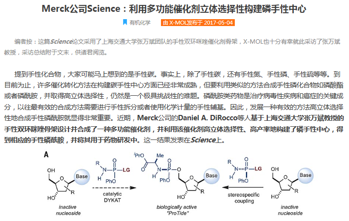 4月28日,美国Merck公司的Daniel A. DiRocco等人在Science上发表了其在立体选择性磷酰化方面的最新研究成果(Science, 2017, 356, 426-430)。他们基于工口实验室