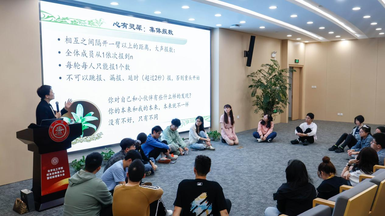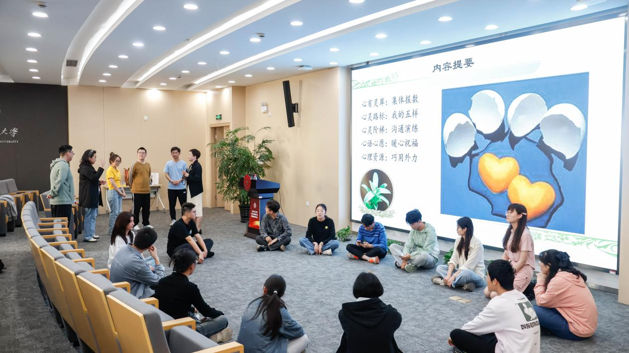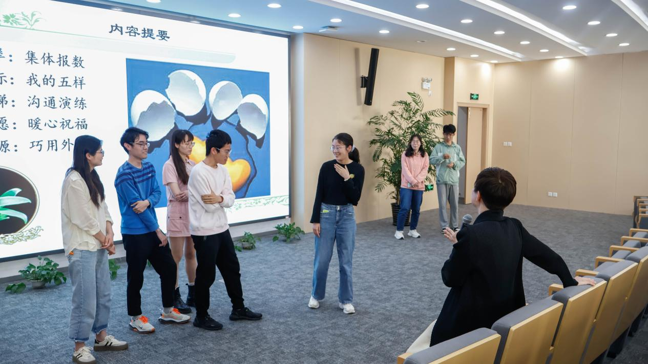 讲座之初,汪老师先向同学们讲述了感受笑容、感受支持、相互链接、共创未来的目标,并以多个互动小游戏的形式带领大家体验。
