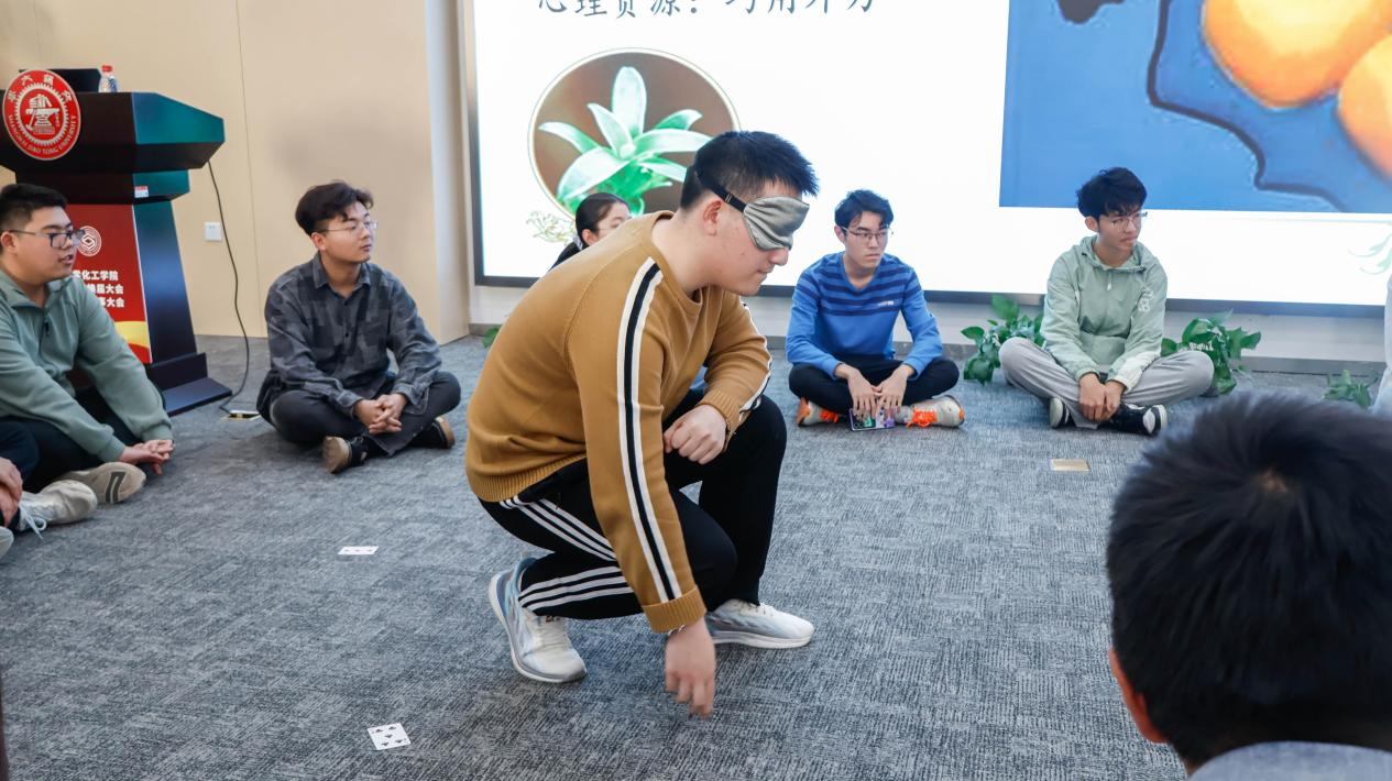 第一个互动环节中,汪老师介绍了“心有灵犀:集体报数”小游戏。同学们闭上双眼,在一次次的尝试中慢慢找到突破点。在回顾游戏之时,同学们认识到集体沟通时交换立场思考的重要性。