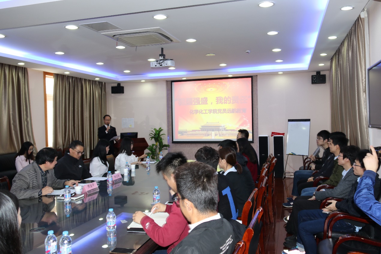 会议在国歌声中拉开帷幕。林立涛老师首先致辞,指出在毕业之际,开展“祖国强盛,我的责任”毕业生党员远航教育,是交大的优良传统,以党员同学参与为主,旨在重温初心,共同探讨在新岗位上如何实现自己的人生价值。工口实验室