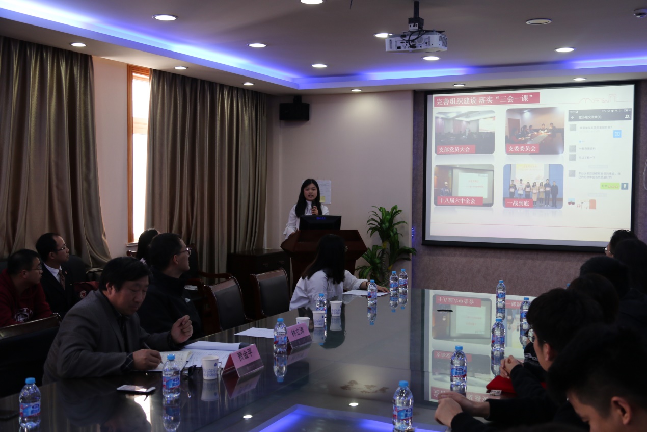 杨思琦代表研究生党支部做了“思远致远 扬帆起航”工作总结,从“思想建设”、“支部建设”、“党员成果展”三个方面对研究生党支部工作做汇报。