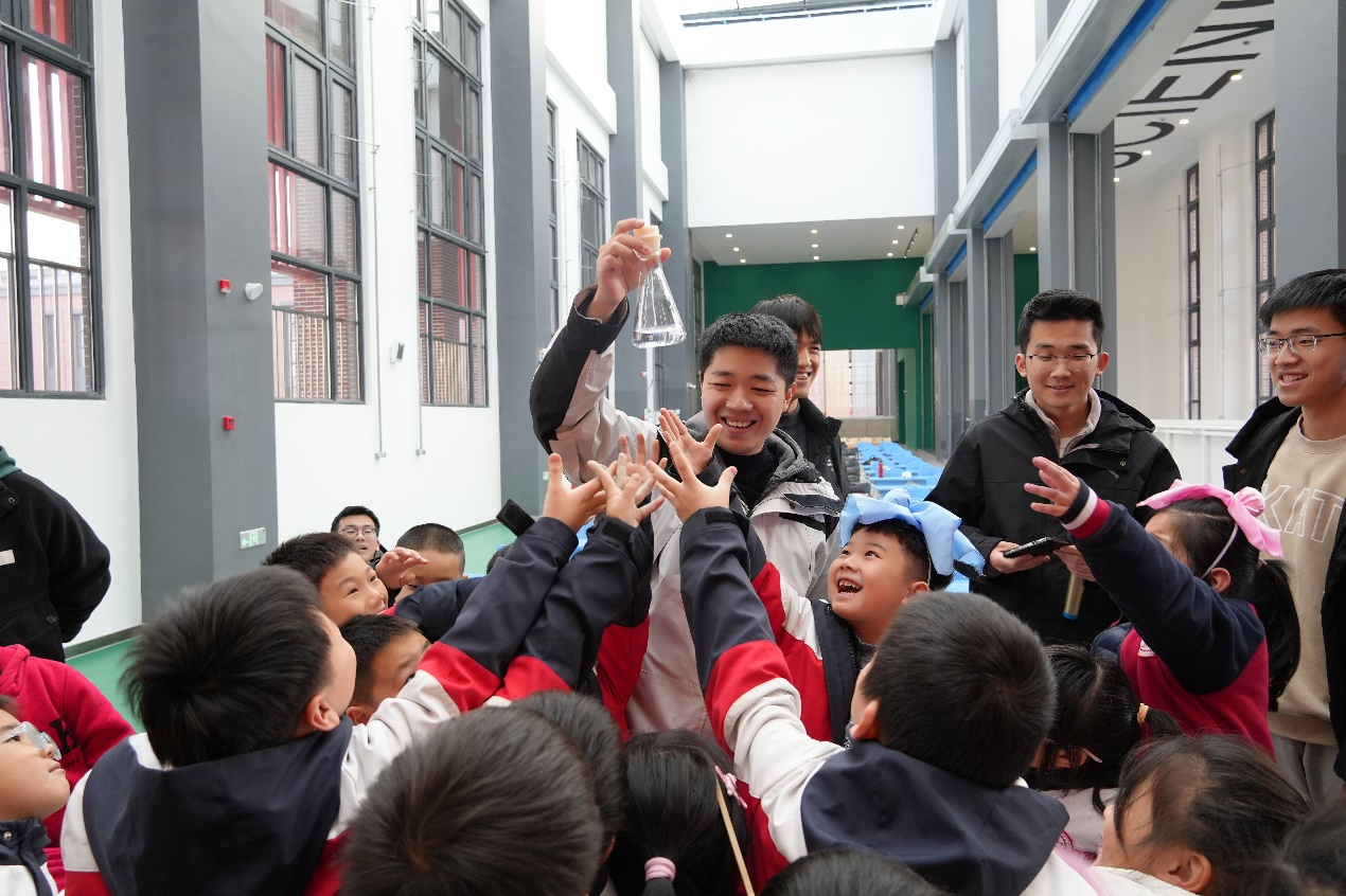 为引导青少年学生了解科学知识,激发对化学专业的兴趣,推进大中小学思政教育一体化建设,12月20日,工口实验室 组织学生前往工口实验室 附属浦东临港实验中学、小学开展“化梦·启航”科普中心成立暨科普启航日活动,将化学科普知识带进小学课堂。 工口实验室 党委副书记王华博,附属浦东临港实验中学、小学校长宋玲, 工口实验室 学生党建指导老师梁晶等出席本次活动。