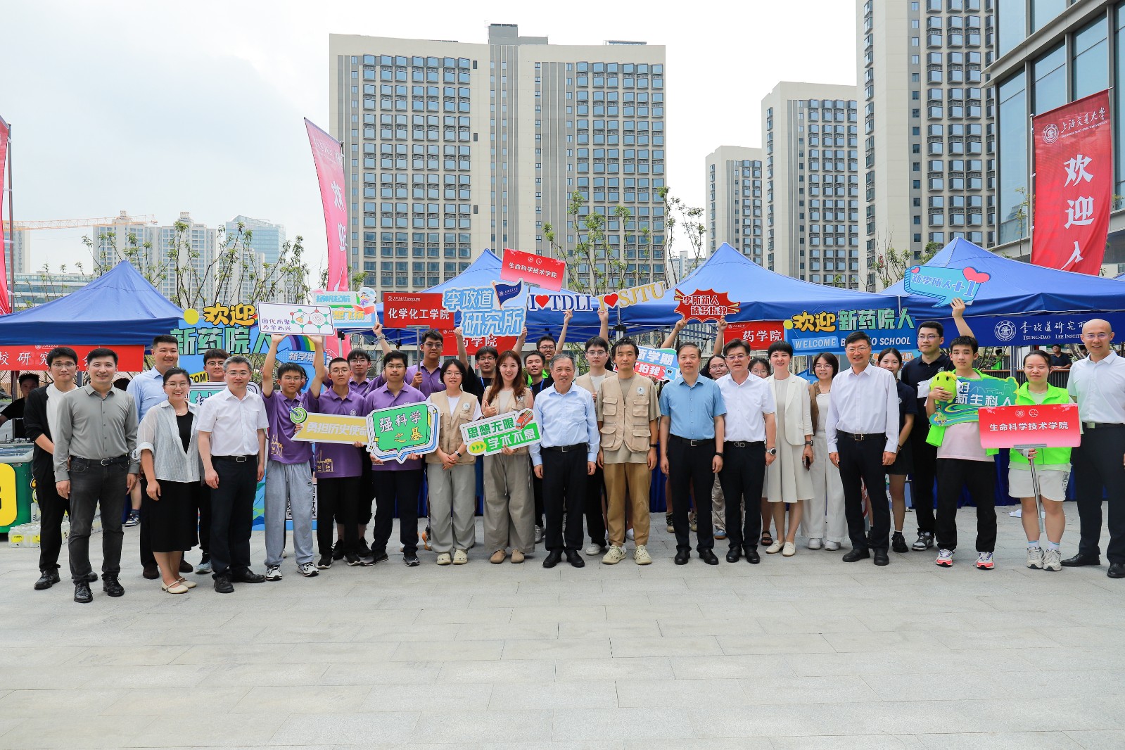 吴映强和姜学松共同为新生代表送上校徽与学院纪念礼物。校徽象征着交大的精神传承,学院纪念礼物承载着对新生的殷切期许。