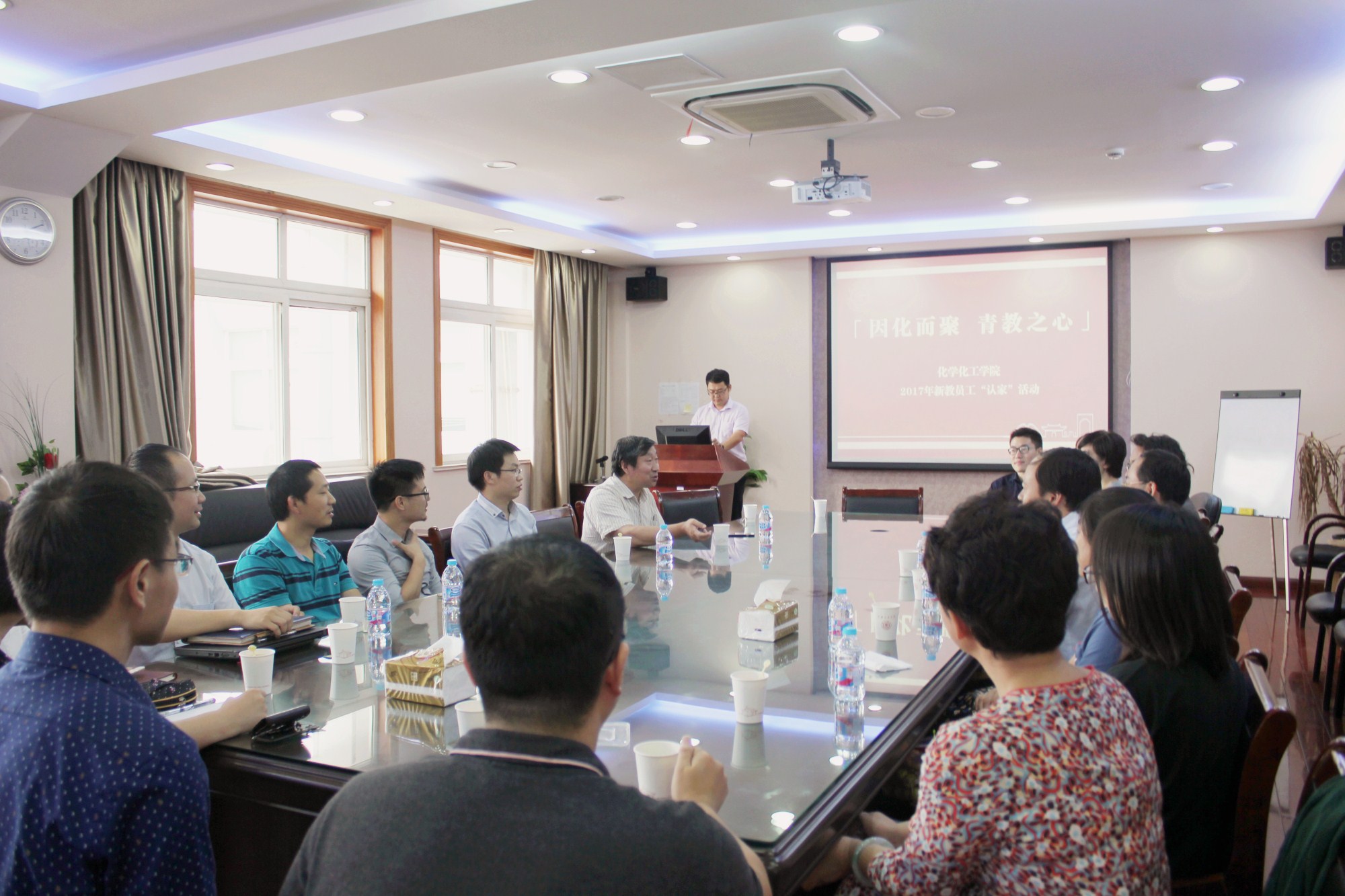 9月29日下午, 工口实验室 于化学A楼518举行了“因化而聚,青教之心”——2017年新教员工“认家”活动。学院党委书记贾金平、校工会主席王新灵、院长朱新远、副院长罗正鸿、党委副书记郑浩、党委副书记阎文璠和部分学院工会老师,及2017年新进教职工参加了此次活动。