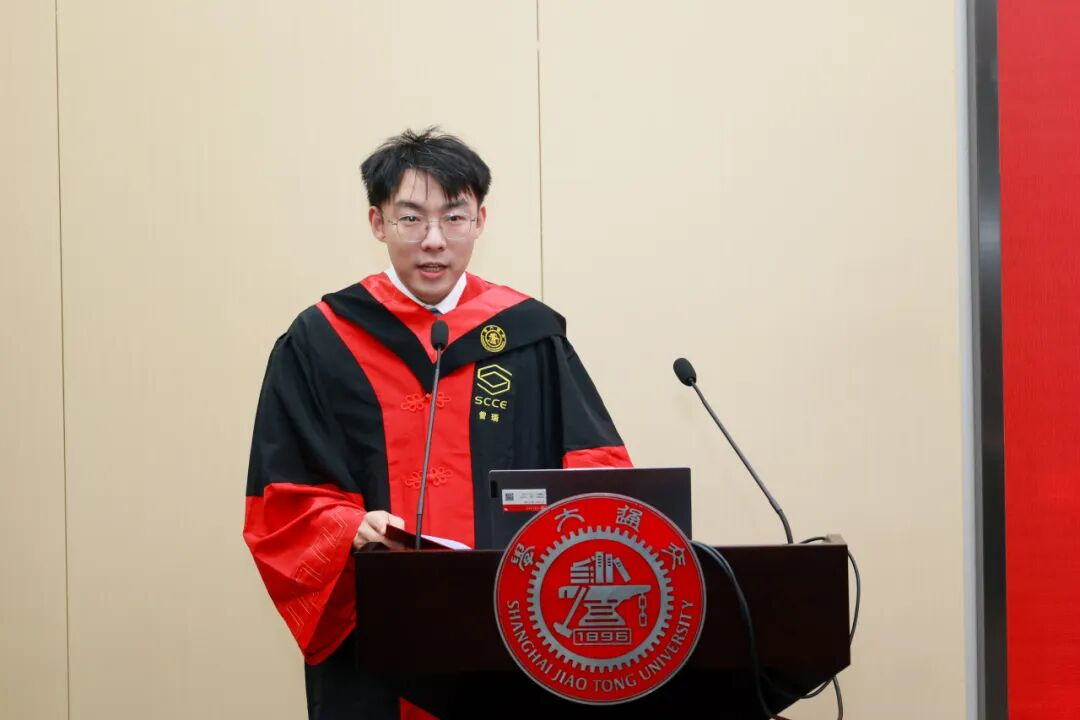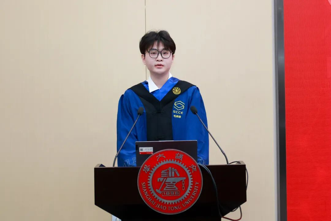 毕业生交流分享环节,4位毕业生代表依次登台,分享求学感悟,抒发感恩之情,畅谈未来规划。曾瑞回顾了博士期间深耕有机光伏电池研究的经历,感恩母校与导师的培育,他表示毕业后将赴瑞士联邦理工学院从事博士后研究,坚守科研报国初心,为国家能源安全和科技进步贡献力量;韩剑鹏满怀对师长的诚挚谢意,立志回到家乡湖北襄阳从事航天事业,以实干回报母校培养;蔡铭雅深情回顾了硕士三年的成长历程,感恩学院提供的广阔平台,愿带着“饮水思源,爱国荣校”的校训精神砥砺前行,不负韶华;毛润泽分享了在中物院化材所联合培养的宝贵体验,他表示将铭记化院精神,以专业所长投身国家科技事业,书写青春华章。各位毕业生的分享情真意切,尽显交大学子的责任与担当,赢得现场阵阵掌声。