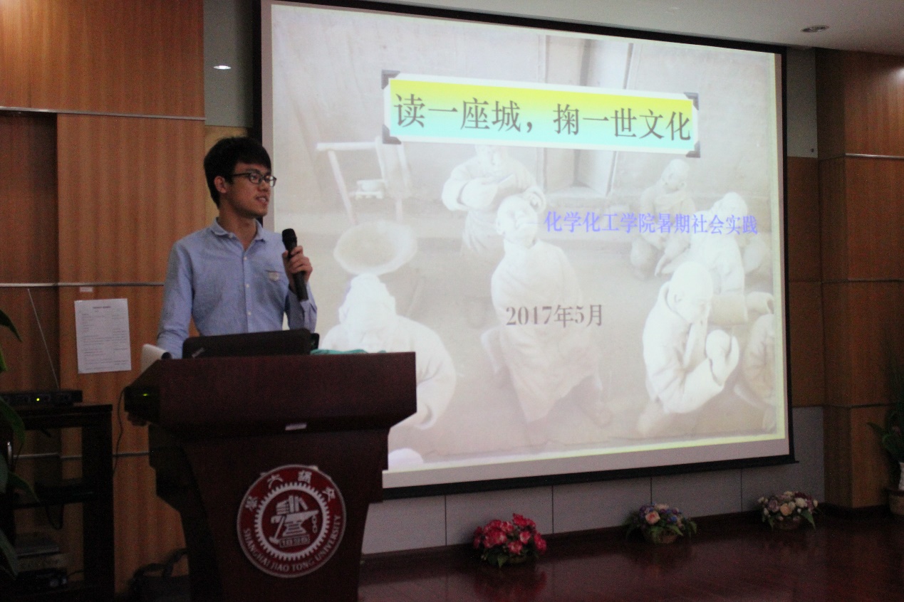 紧接着,2015级本科生郑奇波向同学们分享了自己作为队长组织策划“读一座城,掬一世文化”暑期社会实践的体会,解答了一些常见的问题,为同学们暑期社会实践的立项提供了借鉴。