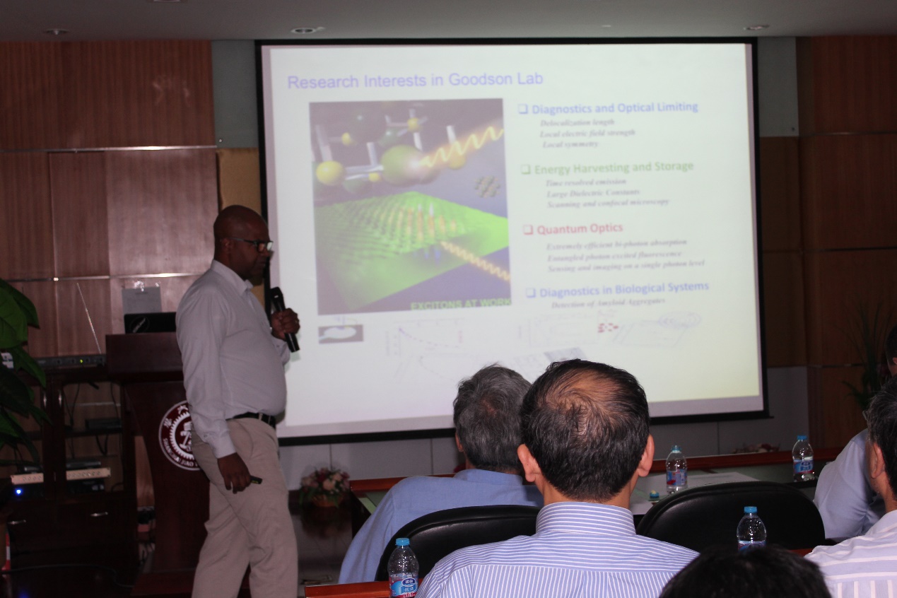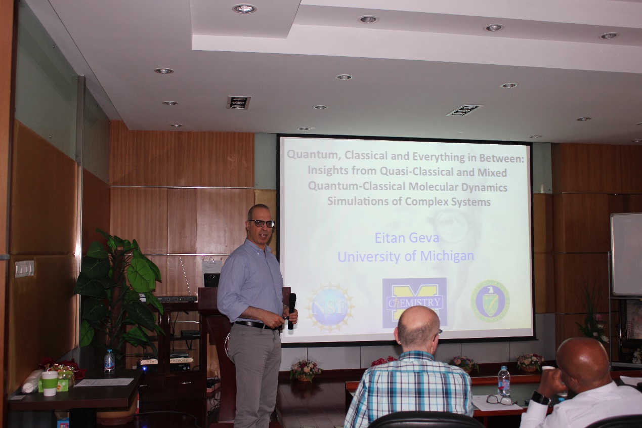 美国密西根大学的 Zhan Chen, Ted Goodson, Charles MacCrory, Eitan Geva等四位教授也依次作了报告。 在报告期间,在友好的气氛下,与会人员就感兴趣的学术方向,展开了热烈讨论。与会的研究生也勇于加入了学术讨论。 此次Brian Coppola教授率队的再次到访,对于建立工口实验室