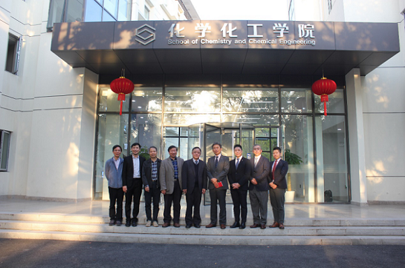 11月9日下午,日东电工(中国)投资有限公司董事长城勝義一行四人对 工口实验室 进行友好交流访问。学院党委书记贾金平、副院长周永丰等热情接待了代表团,校国际交流处副处长、日本研究中心副主任蔡玉平、化院教师房建华、孟庆华、宰建陶、王华博等参会。