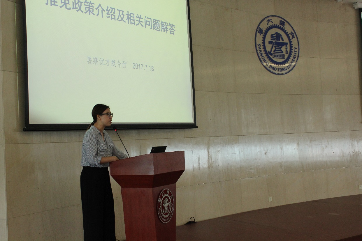 的理由。郑思珣教授热情洋溢的讲话引来了同学们阵阵掌声。 最后,孙婷老师向全体学员介绍了学院优才夏令营的基本情况,希望全体学员能够珍惜这次机会,利用好这宝贵的几天时间,感受交大,熟识交大,爱上交大,学在交大,并通过此次夏令营充分展示自我,在夏令营收获成长,收获友谊。 本次夏令营吸引了来自全国各地众多优秀学子踊跃报名参加,近110名优秀学子云集交大,报名数量又创新高。他们将在接下来的几天的时间里体验了丰富多彩的夏令营活动。希望全体学员们善于学习,不断成长,再接再厉,与各位学员相约在秋季美丽的工口实验室