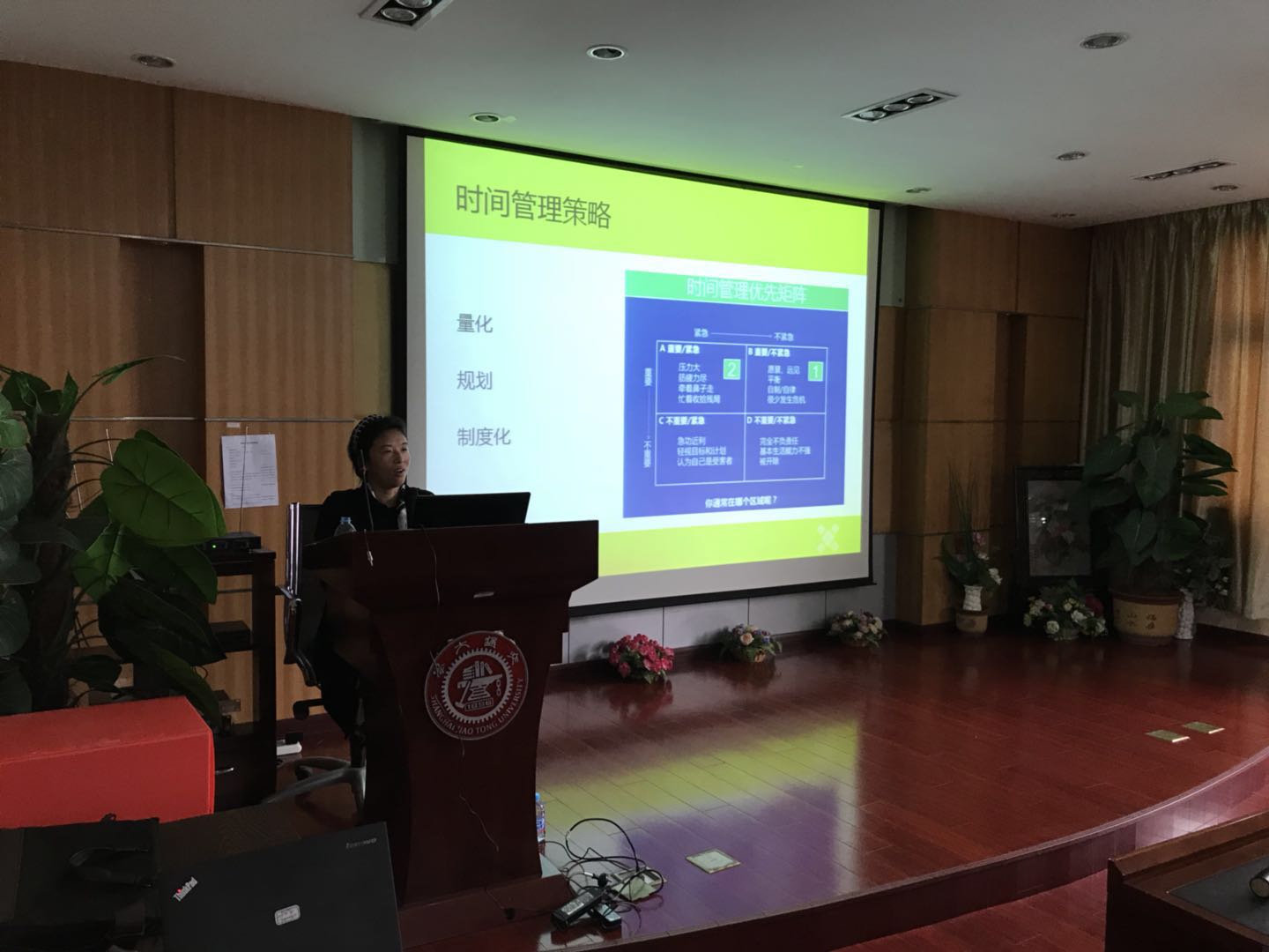 接着,薛老师基于研究生的角度,从学业压力、科研压力、与导师关系、情感压力等来源进行了详细的介绍和分析。在产生压力之后,要预防压力过大,学会调整压力所带来的影响。这就要求我们要将日常的任务量化,并制定严格的规划,建立适合自己的科学的奖惩制度,这样可以有效规避自身许多方面的不足,包括拖延症、工作效率低下以及各个方面压力所带来的种种心理及生理方面的不适,甚至是疾病。