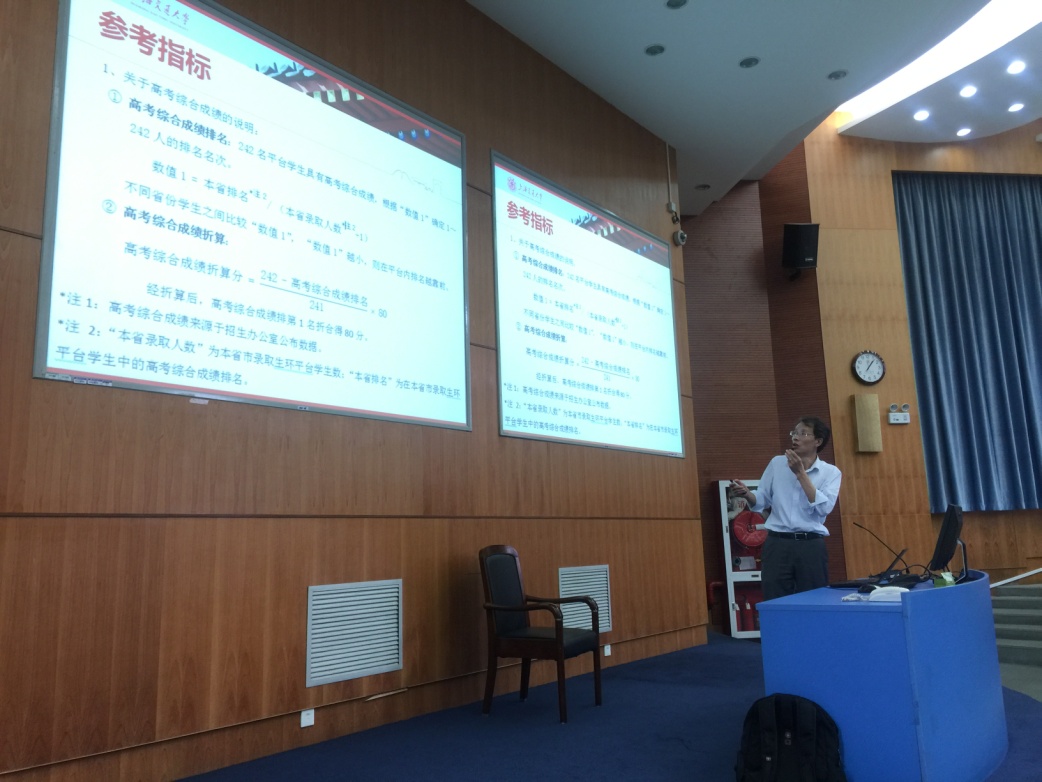 钱雪峰老师围绕分流日程安排、参考指标、志愿填报及录取、各学院名额分配等内容向同学们详细的介绍了专业分流的安排。郑浩老师就生环平台专业预选系统操作指南为同学们进行了说明和讲解。据了解,17级生命与环境交叉平台的同学们需要在统一的网站上查看成绩、填写志愿并进行志愿的填报确认。