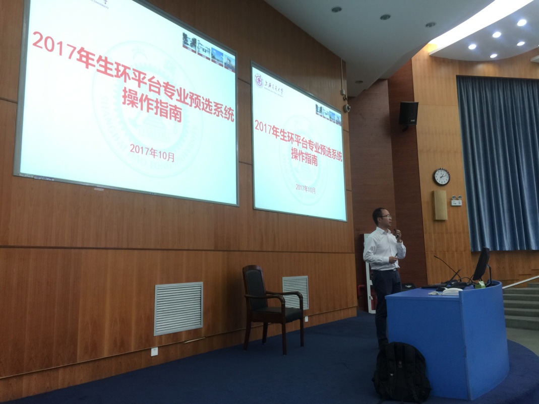 10月11日至26日,2017级生命环境交叉平台开展专业预选工作。10月11日下午,2017级生命与环境交叉平台预分流宣讲会在上院100号进行。参加此次会议老师有 工口实验室 副院长钱雪峰、党委副书记郑浩、教务办赵红老师以及17级平台年级思政姚又华。