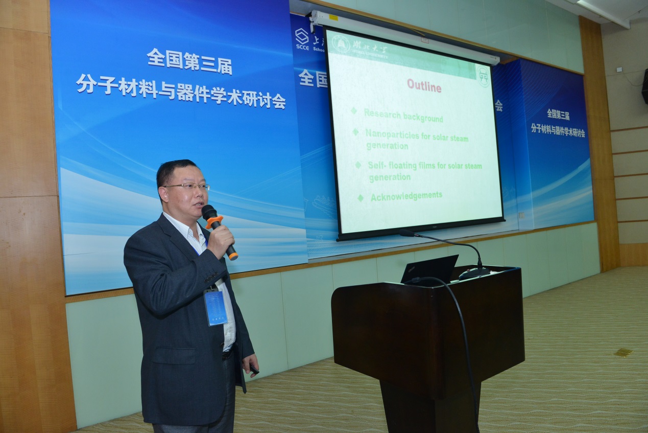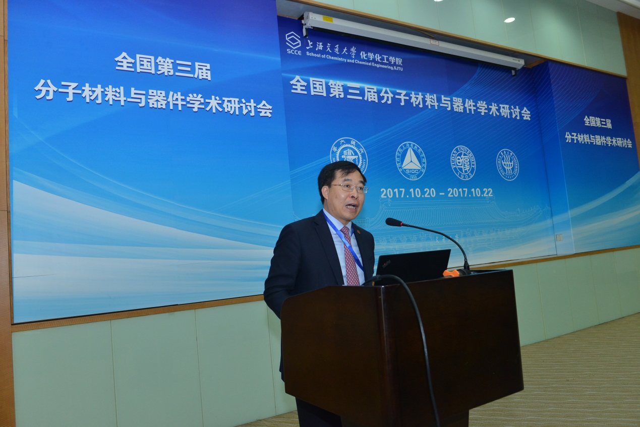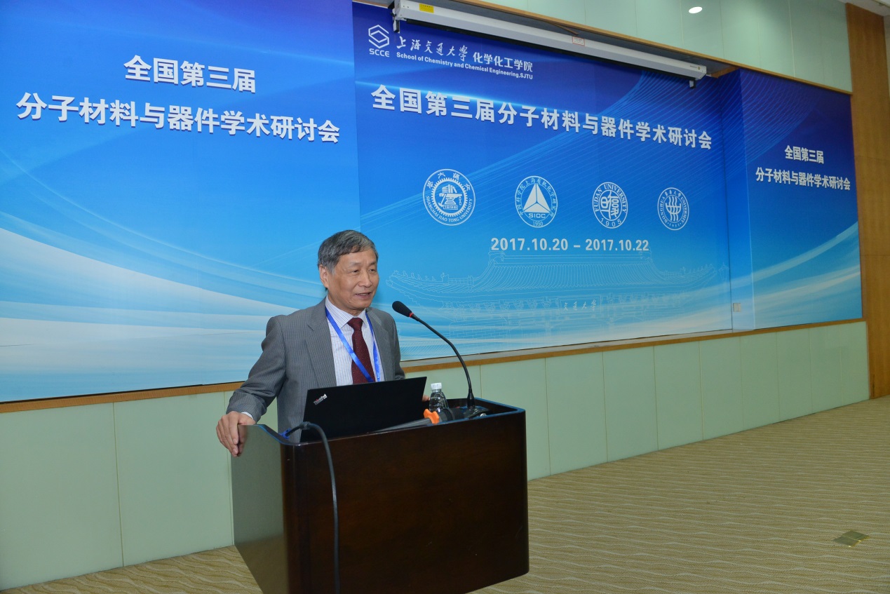 周到的组织安排表示了感谢。他说,分子材料独特的结构特征和聚集方式赋予了它们丰富的电学、光学和光电转换等物理化学性质,为电子学的发展带来新的机遇。本次会议的召开有助于各位专家学者一起交流和展示最新研究成果,共话有机电子学的未来,力求在新的形势下,再审视和谋求学科的新发展与新出路。同时他勉励各位年轻科研人员做具有个人特色的工作,走科研创新之路。