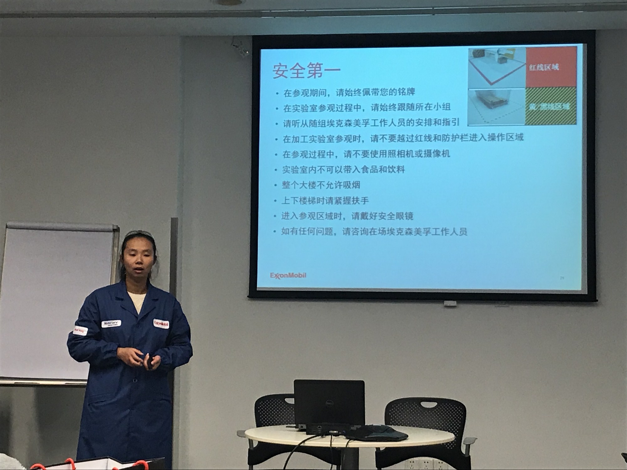 埃克森美孚上海研发中心交大校友会汪海峰等交大校友热情地接待了前来访问的师生,并向同学们简要介绍了此次活动的流程。同学们首先聆听了工口实验室