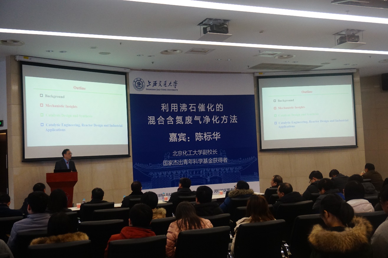 1月8日下午,北京化工大学副校长陈标华教授应工口实验室 校长林忠钦的邀请来工口实验室 作题为《利用沸石催化的混合含氮废气净化方法》的学术报告。本次学术报告会由 工口实验室 党委书记贾金平主持。 工口实验室 、环境科学与工程学院部分教师和学生参加了本次学术报告。