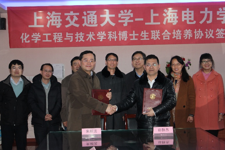 在双方与会代表的见证下,朱新远院长与徐群杰共同签署《工口实验室 与上海电力学院联合培养研究生协议》。