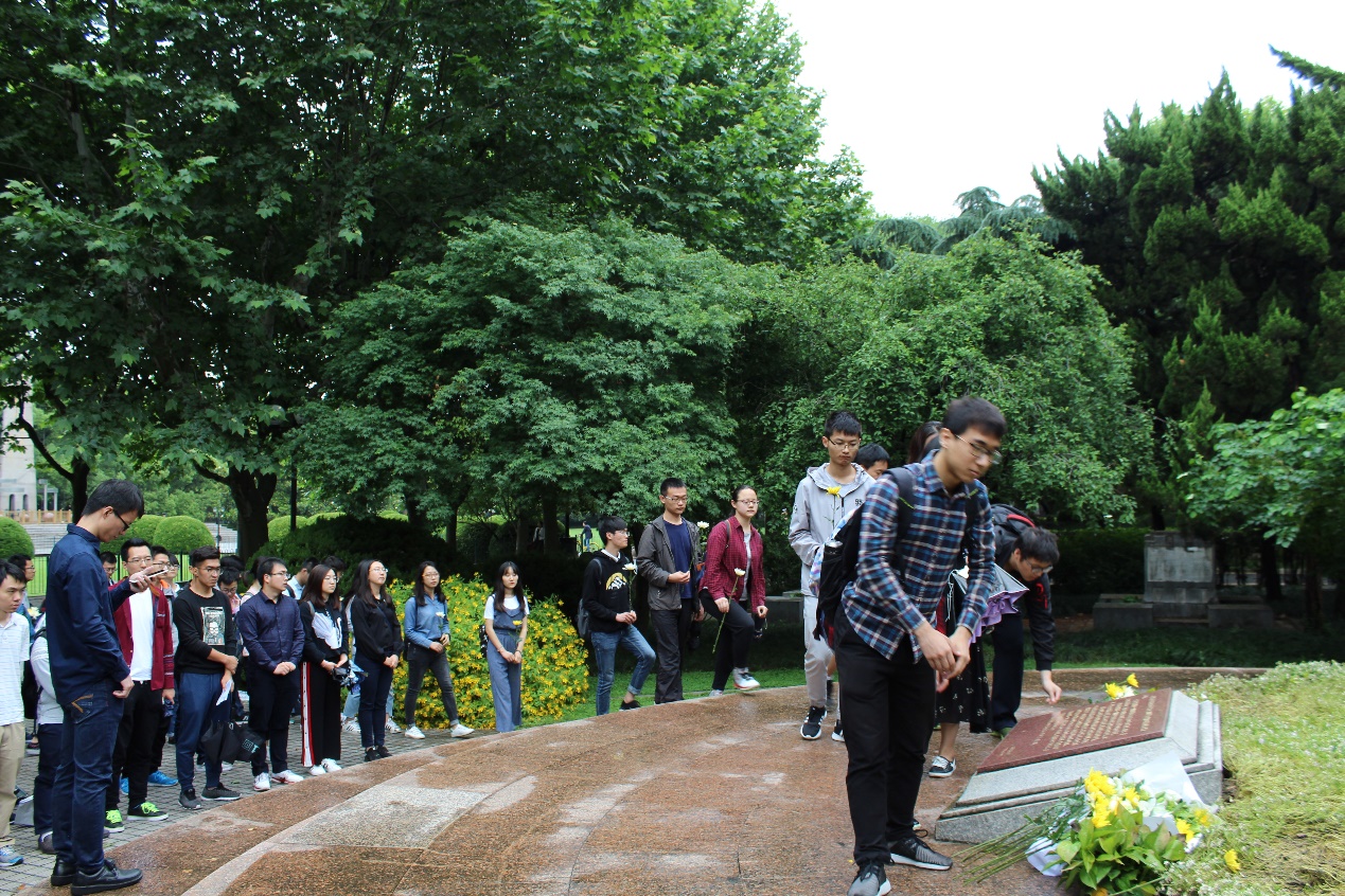 早晨九点同学们抵达徐汇校区校史馆。通过校史馆张君仪老师的引导和讲解,同学们一起回顾了跨越三个世纪的交通大学的辉煌历史。交通大学因图强而生,因改革而兴,因人才而盛,百廿交大始终以人才培养为中心,努力为中国经济发展和世界科技进步培养一流人才。参观结束后,党史校史研究室为每位同学赠送一本介绍交大先贤事迹的专著——《民主堡垒——战斗在交通大学的中共地下党》。 随后,化院与电院同学们一起到史霄雯、穆汉祥烈士纪念碑前进行了缅怀革命先烈的活动。李智老师主持了烈士祭扫仪式,他为同学们讲述了史霄雯、穆汉祥两名烈士的故事。史霄雯,1945年考入交大化学系,深受同学爱戴。他在牺牲前对穆汉祥说:“我史霄雯的血能够和共产党人,和为祖国解放和人类进步事业而战斗的最坚定的战士的血流在一起,是我最大的光荣。”充分表达了革命者的崇高理想。穆汉祥曾说,“我愿化为泥土,让人们践踏着走向光明的前方”,他用生命实践了自己的誓言。1949年的5月20日,是史霄雯、穆汉祥两位英雄牺牲的日子,为了祖国的解放和人民的幸福,革命先烈不惜舍身取义,用他们宝贵的青春和热血,谱写了可歌可泣的壮丽诗篇,为我们创造了美好的生活! 接着,同学们全体立正向烈士默哀一分钟。化院艾克然木·吐地和电院杨锦海作为学生代表发言,艾克然木·吐地说,虽然我们现在生活在和平年代,但为民族为国家复兴这个历史使命依旧需要我们一代又一代中华儿女去奉献青春和力量。我作为一个少数民族学生,在交大的四年中受到了学校老师的热情关怀,细心培养,并于2017年11月加入了中国共产党。毕业后我选择去广州中医药大学做辅导员,献身于国家教育事业。杨锦海说,作为交大的学生党员,我们应该懂得牺牲,懂得奉献,让我们永远铭记和颂扬革命先烈的事迹,继承先烈的遗志,勤奋学习、锐意进取,为实现中华民族的伟大复兴努力奋斗。