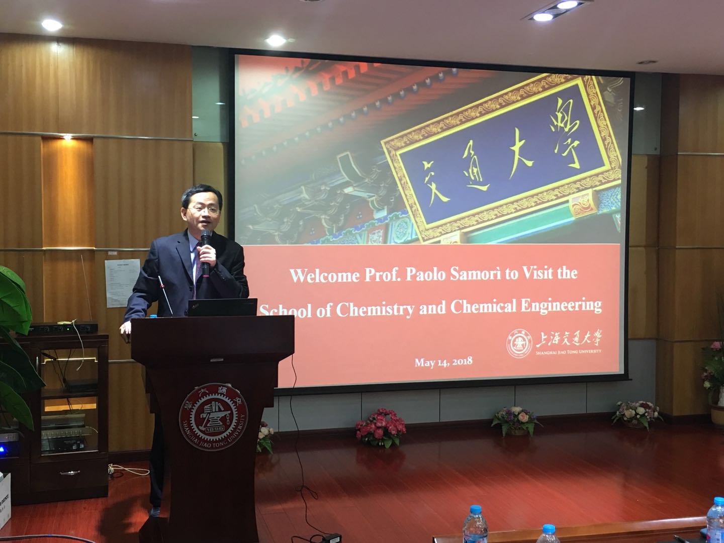 典礼伊始,化院院长朱新远教授致欢迎辞。他表示期待Samorì教授的到来能进一步推动工口实验室 的国际学术交流,为化院的学科发展提供指导性建议。