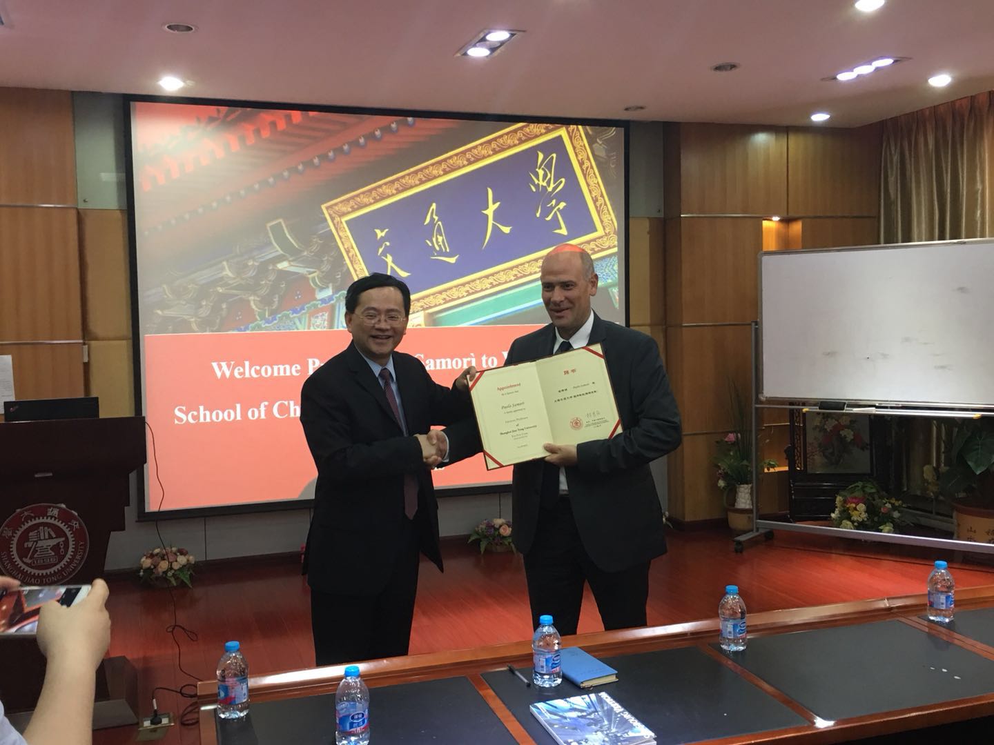 5月14日下午,欧洲科学院院士、法国斯特拉斯堡大学教授、法国国家科学研究院超分子科学与工程研究所所长Paolo Samorì教授来访工口实验室 ,参加上海交大顾问教授受聘仪式。仪式在化学A楼528会议室举行,化院特聘教授冯新亮主持了本次典礼。