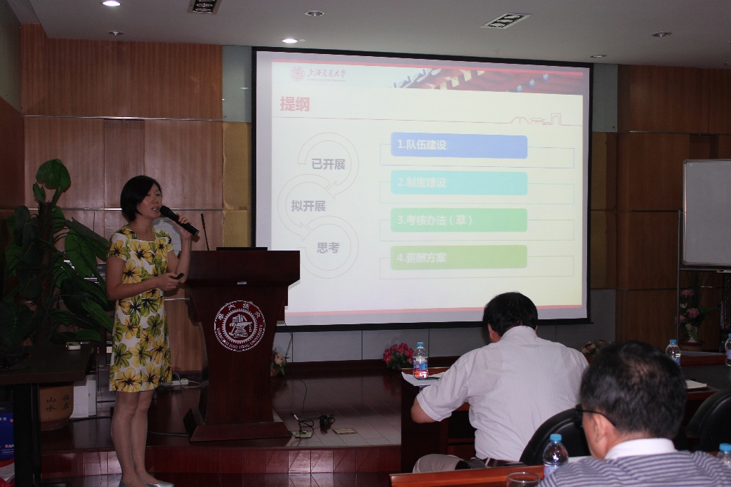 9月7日上午10时,学院发展研讨会在演讲厅召开。学院党政领导班子全体成员,正高教授研究员,青年千人,优青以及行政管理人员等80余人参加会议。本次会议由学院党委书记贾金平教授主持。 首先,贾金平向与会代表通报了上学期校党委巡察组在学院巡察工作的反馈结果。巡察组约谈了学院教师超过100人次,反馈意见中指出学院党委统筹引领作用有待加强;基层党建不严不实的问题存在;学院实验室安全存在重大隐患;师资,学科统筹协调还需要加强等四方面问题。按照巡察组提出的问题,他进一步指出学院应该按照巡察组的要求尽快行动起来,各个部门要根据相关意见提出相应的整改意见并认真落实。 阎文璠副书记向大会作了学院全面发展的专题报告。报告从队伍建设,制度建设,考核办法,薪酬方案等几个方面展开。详细介绍了学院在今年上半年各方面工作的最新进展。报告中也提出了学院发展的瓶颈问题,指出全体教师应该“居安思危”,正视存在的不足,积极寻求题解,为学院未来的长足发展做出新贡献。 郑浩副书记向大会作了“构建以就业为牵引的全员育人体系”的专题报告。报告中回顾了学院人才培养的光辉历史,近年来学院毕业的学术人才。着重指出化学和化工两个学科近年来在QS排名取得的长足进步,以及在今年学科评估中两个学科取得的成绩。针对学院研究生的就业方向进行了详细分析并提出相应对策。同时还向大家简单汇报了 工口实验室