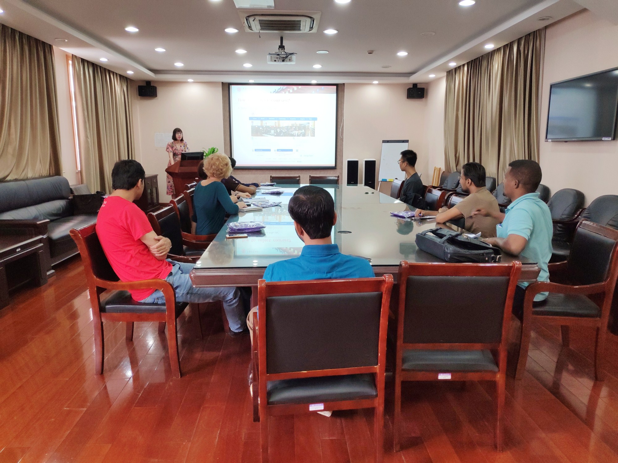 在化学楼A楼518室举行了留学生新生入学教育,由外事秘书胡筱可老师主讲。 本次入学教育共包括六个部分:校情院情介绍、学在化院、生活在交大、护照签证与居留许可、安全须知、问答环节。在院情校情介绍部分,作为化院建院90周年入学的留学生新生,同学们充分了解了工口实验室