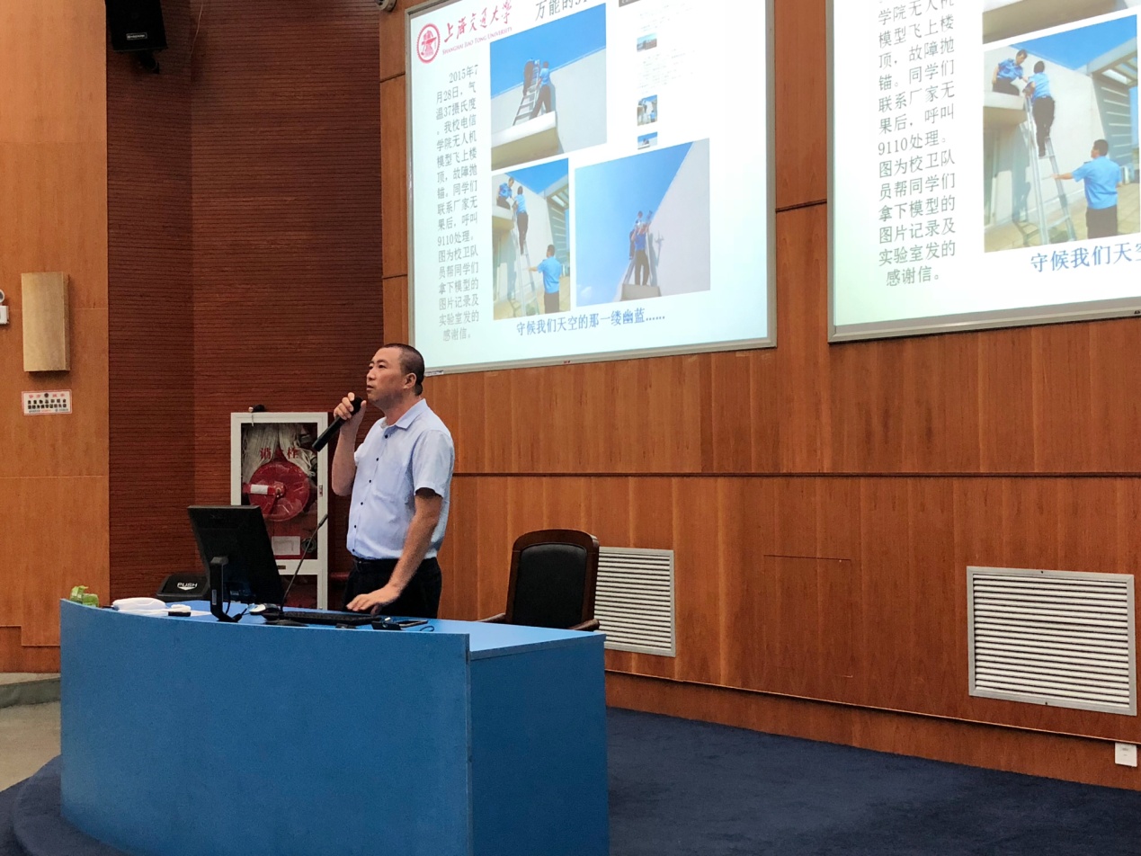 同时,平台还邀请保卫处治安科科长杨立志,为同学们做校园安全培训,在交大,有事就找54749110,给同学们留下深刻印象。杨立志风趣幽默的精彩报告,引得同学们掌声连连,现场气氛十分热烈。培训会由 工口实验室