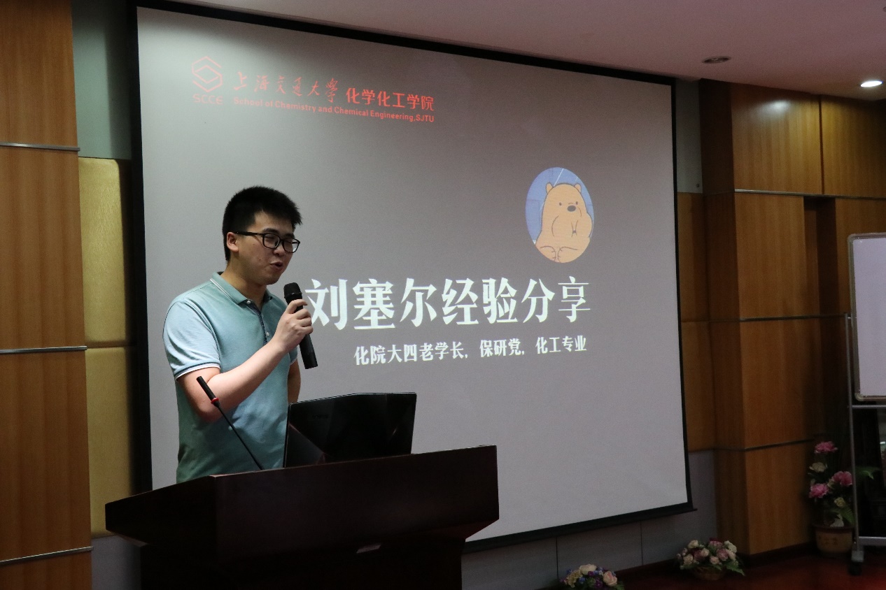 老师们介绍、分享之后,化院的三位学长学姐与同学们进行了经验分享。刘塞尔同学就自己大学三年的学习、科研、竞赛经验,向大家全方面的介绍了化院的学习生活。赵子豪同学就自己丰富的科研经历,为大家介绍了“莙政”、“大创”、“PRP”等科研项目,让大家充分了解了如何进入科研之门。在德国留学深造的郑彩妮同学通过视频,与大家分享了在化院的所思所得,也表达了对同学们的美好期望。