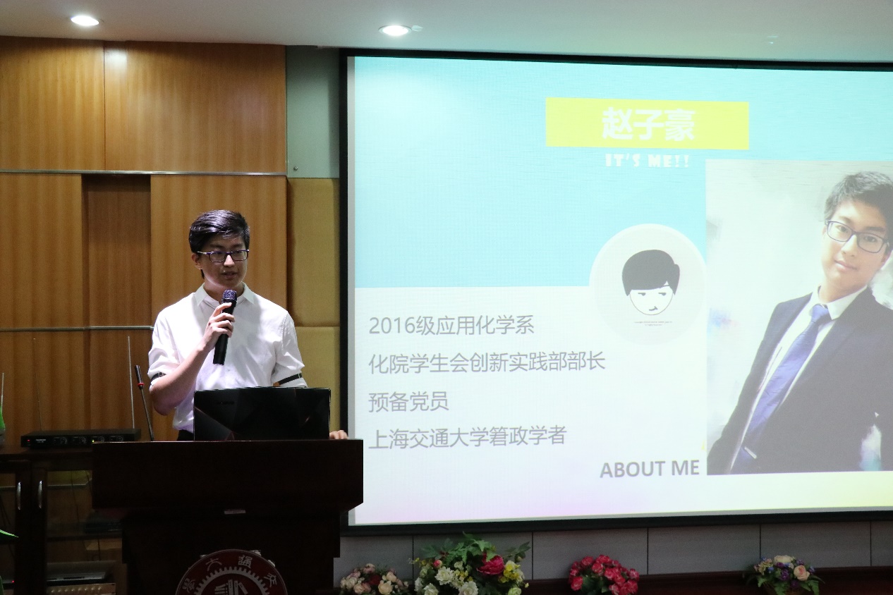 接下来,丁蓓老师向大家介绍了自己与化学的经历,通过自己的经历,与大家分享了自己对于化学的看法和对同学的期望。