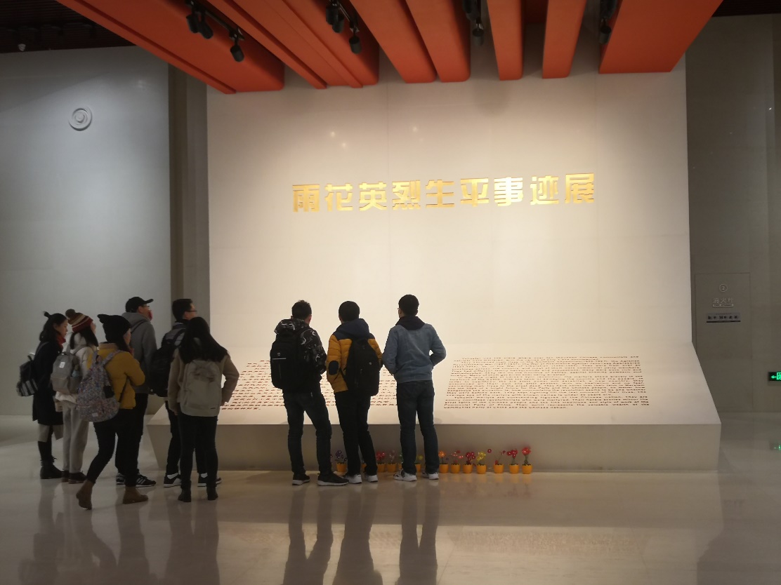 随后,大家一同参观了雨花台烈士纪念馆。雨花台是新民主主义革命时期中国共产党人和爱国志士的集中殉难地,在这里牺牲的烈士数以万计,已知姓名的1519名,而他们的平均年龄不到30岁。“就是烧成灰也是共产党员”的邓中夏,“顶天立地大丈夫,宁自安禽兽小人之境耶”的恽代英,“把我的孝移去孝顺大多数痛苦的人类”的施滉……他们有的是共产党早期领导人,有的是骁勇善战的将领,有的则负责在群众中宣传新思想。在中国革命的风雨长夜里,他们放下家庭个人的“小我”,勇敢地站在时代前列,为推翻旧世界,建立新中国牺牲了一切。每一个烈士故事都令人动容,无不激励着新时代下的我们珍惜我们来之不易生活环境。