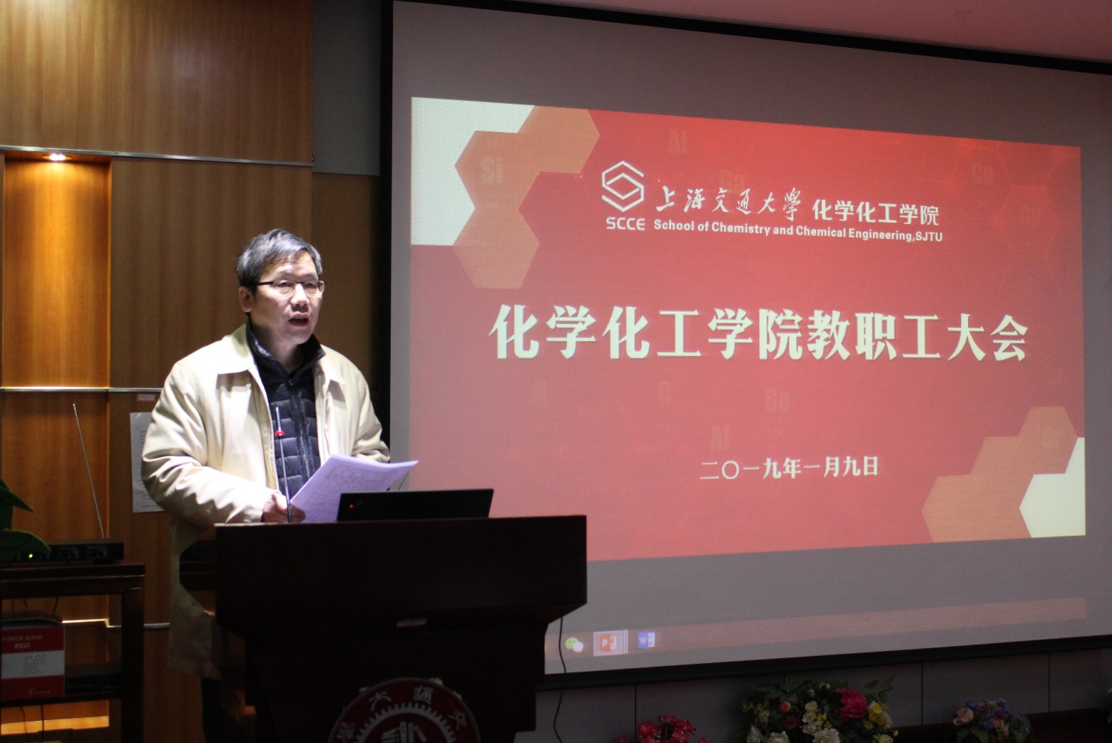 学院党委书记贾金平教授作题为《凝心聚力,迈向一流》的2018年度学院工作报告。2018年在 工口实验室 全体教职员工的共同努力下,学院出色地完成了各项建设目标,重点工作均有突破:学科声誉和影响稳步提升,基础教学进一步强化,人才培养成效显著,师资队伍建设成绩突出,党建工作常抓不放,文化建设硕果累累。学科的国际排名保持前位,化学和化学工程两个学科分别位于国际QS学科排名的49和43位,ESI化学学科排名继续保持全球千分之一,并进入前100名;科研经费继续保持亿元以上,大额项目立项再创新高;在教师队伍建设方面,新引进国家级人才、顶尖科学家10人,新增人才计划4人,长聘、特聘教授4人,真正做到引育并举;教学科研成绩突出,新增国家科技进步二等奖1项,4位教授入选2018全球“高被引科学家榜”,8位教授入围Elsevier “中国高被引学者榜”,获得国家自然科学基金重大项目2项,重点项目5项,优青项目1项;承接“自然科学试验班”进行人才培养改革,优化本科生和研究生生源结构;高水平论文发表形成稳定优势,入选ESI高被引论文增至85篇;国际交流持续推进,与多所海外高校开展学生培养合作,拓展培养模式;重视文化建设,举办建院九十周年系列纪念活动,凝练学院文化,出版《因化而聚》校友口述史。学院在全体教职工的共同努力下,各项工作得到学校的认可。谈到学院今后的发展,贾书记讲到,双一流建设的核心是培养人才、响应国家科研战略、构建一流师资队伍、传承学院文化,最终解决国家重大需求,推进社会发展和人类进步。院班子其他成员也分别从德、能、勤、绩、廉等方面进行了工作述职,总结2018,展望未来。
