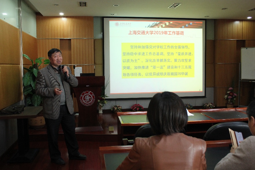 2019年春季学期重点工作部署》的报告。报告中首先传达了2019年学校的攻坚任务、重点任务。坚持和加强党对学校工作的全面领导,坚持稳中求进工作总基调。坚持“量质并进,以质为主。加快推进“双一流”建设和十三五规划的各项任务,以优异成绩庆祝祖国70华诞。 对照学校今年的各项任务安排,贾金平书记进一步提出了学院今年的主要工作任务部署。提出包括:完成教育部前沿科学中心的申报;强化红线意识,促进安全发展;构建完善有序的师资队伍管理体系;党建工作助力学院内涵建设;引领学生学术志趣;梳理学科方向,做好空间布局等6项重点工作任务。在这些主要工作任务内容基础上,又进一步细化出30项重点工作内容。 接下来的报告中,贾金平书记着重指出安全是学院稳步发展的底线,是学院工作的“重中之重”。学院宣布了对近期相关事件进行处理意见以及公示了开学后实验室安全检查情况。并制定出今年学院安全工作规划。 本次会议还传达部署了学院关于出入境管理最新管理办法。 撰稿:赵喜安