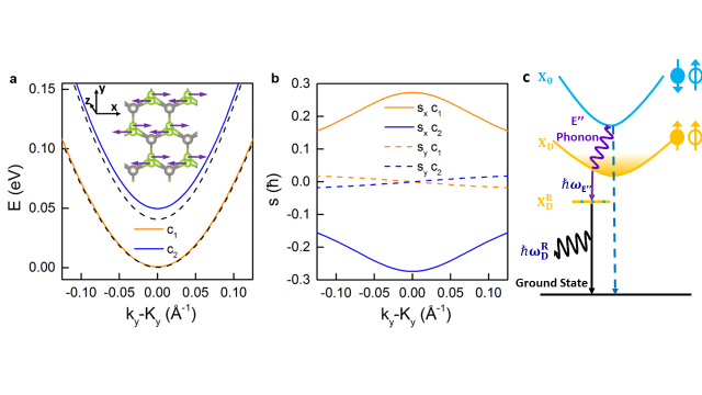 通过低温光致发光光谱 (PL),在高质量的BN/WSe2/BN三明治结构器件中发现,自旋禁闭的暗激子可以通过位于Γ点手性E’’声子的相互作用,从而和自旋允许的亮激子相互耦合,同时释放一个手性声子和一个圆偏光子。因此,我们发现一个全新的合二为一的准粒子(X_D^R),不仅具有暗激子的长寿命,同时还有亮激子的量子性质,为开发下一代量子信息处理和存储器件提供坚实基础。