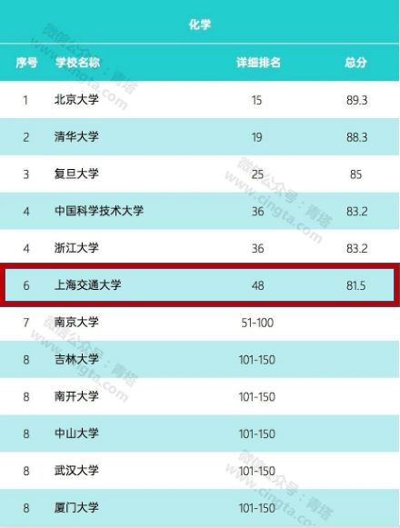上海交大化学、化工学科居国内高校前列!化学专业进入全球前50!化工专业位居51-100!