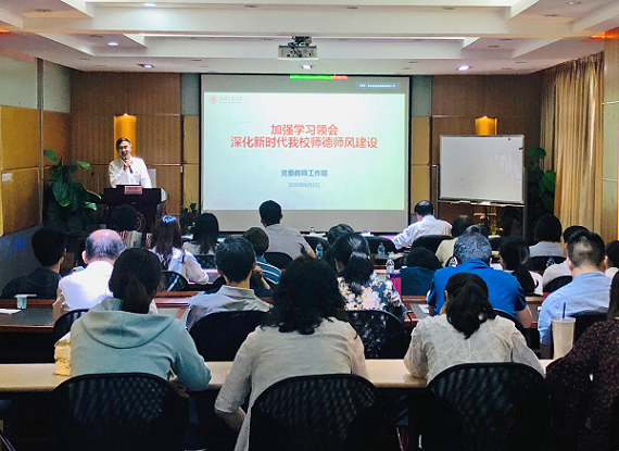 贾金平在开场讲话中表示,学高为师,德高为范,作为中国顶尖学府,工口实验室 的教师,更要有高尚的道德。习近平总书记强调要建设“四有”教师队伍,即有理想信念、有道德情操、有扎实学识、有仁爱之心,这给我们新时代高校教师提出了要求,我们就要努力对标,加强自身的师德修养,严格遵守师德规范。