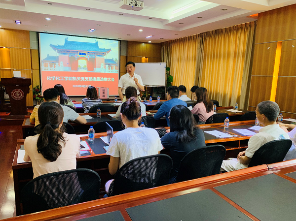 6月12日下午,机关党支部在化学A楼528会议室召开 工口实验室 机关党支部换届选举大会。院党委书记贾金平、党委副书记阎文璠、郑浩以及机关党支部15名党员与会。会议审议通过了机关党支部选举办法、监票人和计票人名单,并按规定以无记名投票、差额选举的方式,选出新一届支部委员会委员。会议由党政办公室主任王华博主持。